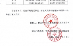就雅安市名山區(qū)黑竹超限檢測(cè)站改造工程電子汽車衡招采,根據(jù)有關(guān)法律、法規(guī)、規(guī)章的規(guī)定,經(jīng)雅安市名山區(qū)茶城建設(shè)工程有限公司競(jìng)爭(zhēng)性談判比選流程,評(píng)審工作已經(jīng)結(jié)束,中選人已經(jīng)確定,現(xiàn)將中選結(jié)果公示如下:中選單位名稱:重慶匯卓電子衡器有限公司中選價(jià):279500元(大寫:貳拾柒萬玖仟伍佰元整人民幣)進(jìn)場(chǎng)時(shí)間:待甲方通知中選質(zhì)量要求:合格自中選結(jié)果公示之日起一個(gè)工作日內(nèi),對(duì)中選結(jié)果無異議的,采購(gòu)人將簽發(fā)中選通知書,并在五個(gè)工作日內(nèi)簽訂合同。雅安市名山區(qū)茶城建設(shè)工程有限公司2021年10月29日...