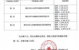 十里梅香茶源項(xiàng)目(三期)164畝施工總承包一標(biāo)段消防工程及安裝采購(gòu)項(xiàng)目成交公示本項(xiàng)目評(píng)審活動(dòng)于2022年1月18日?qǐng)A滿結(jié)束,現(xiàn)將評(píng)審情況公示如下:1、四川思科消防工程有限責(zé)任公司;報(bào)價(jià):下浮12.00%;得分:489.00;排名:第一名2、四川川晟消防工程有限公司;報(bào)價(jià):下浮5.00%;得分:468.95;排名:第二名3、四川安昌消防工程有限公司;報(bào)價(jià):下浮4.00%;得分:432.50;排名:第三名公示期1日,若公示期間無異議,采購(gòu)人將發(fā)放成交通知書給第一名,并簽訂采購(gòu)合同。采購(gòu)人:雅安市名山區(qū)茶城建設(shè)工程有限公司采購(gòu)代理機(jī)構(gòu):四川省中遂建設(shè)項(xiàng)目管理有限公司2022年1月19日...